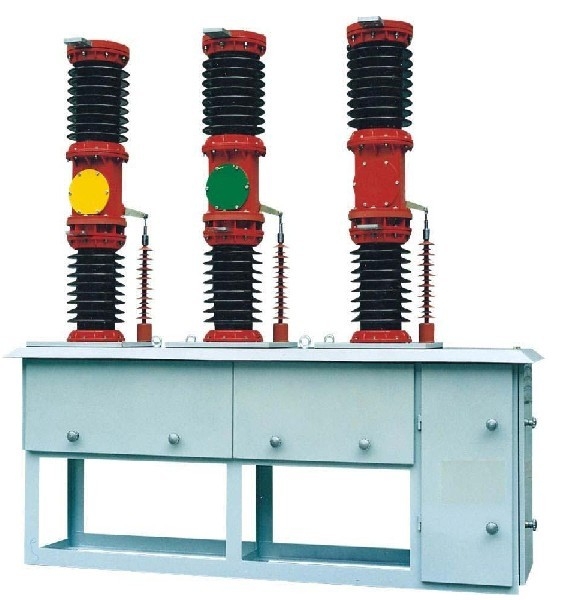 该断路器结构为瓷瓶支柱式,上瓷瓶为灭弧室瓷瓶,内装真空灭弧室,下瓷瓶为支柱瓷柱,三相瓷瓶共装在一个结构箱上,灭弧室动端通过拐臂、绝拉杆与弹簧机构的输出轴相联。弹簧机构及断路器联结的联杆在一个防水的机构箱内。该产品主要由真空灭弧室、电流互感器、传动机构及弹簧操动机构组成。